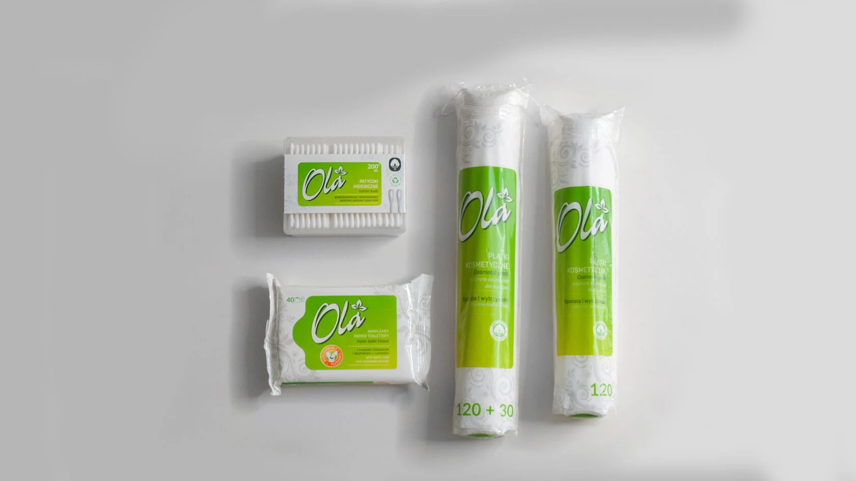 Під брендом Ola ми пропонуємо ніжні, бавовняні косметичні диски, гігієнічні палички та освіжаючі серветки.